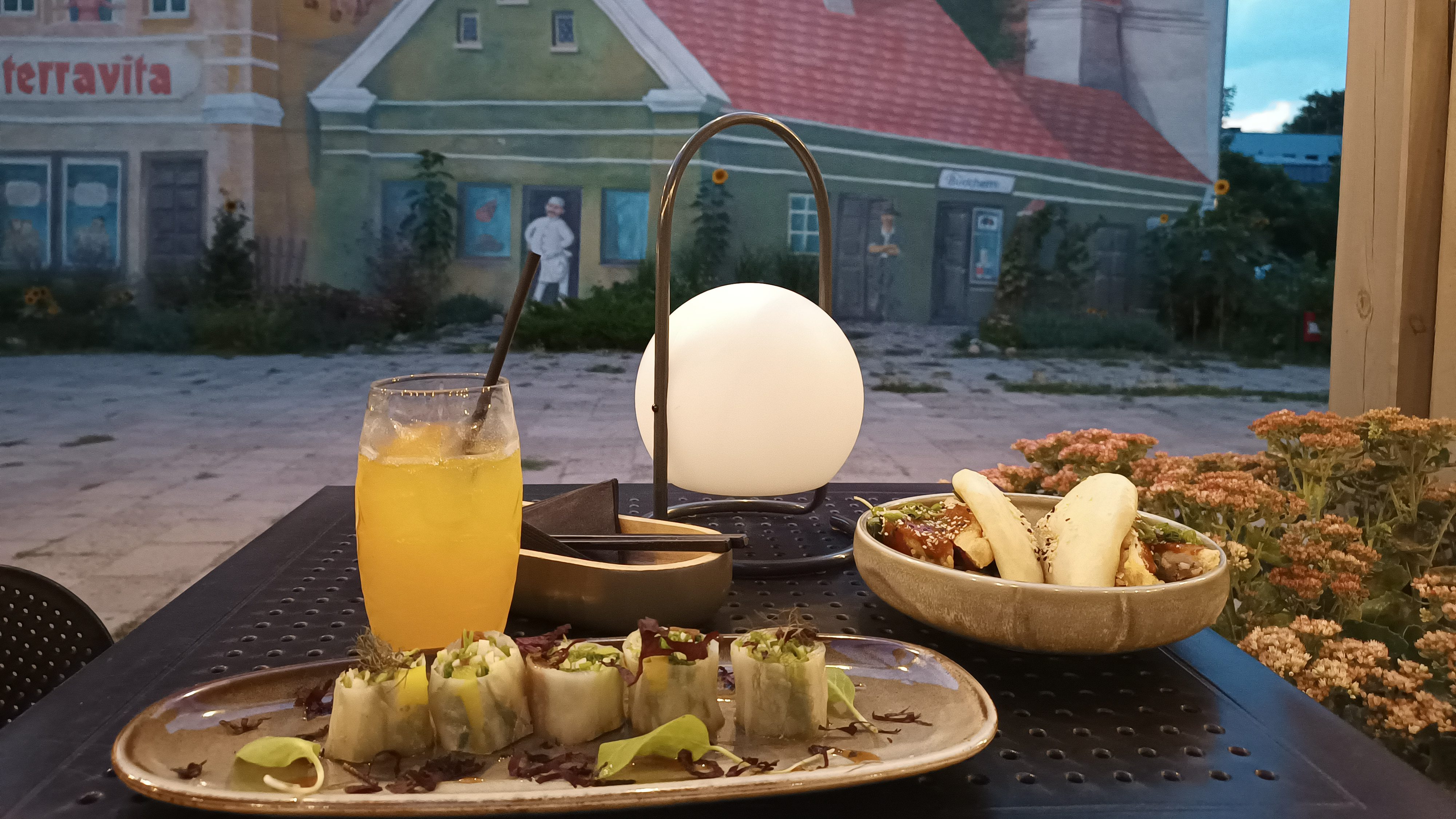 I went to Śródka one evening to take in the mural on the wall a little more. And there is no better place to do that than in the outdoor seating area of Hotel Śródka, directly opposite the mural. The restaurant served ‘Asian’ food, suitably in inverted commas because it was a mix of cuisines, ingredients and interpretations of Asian food.